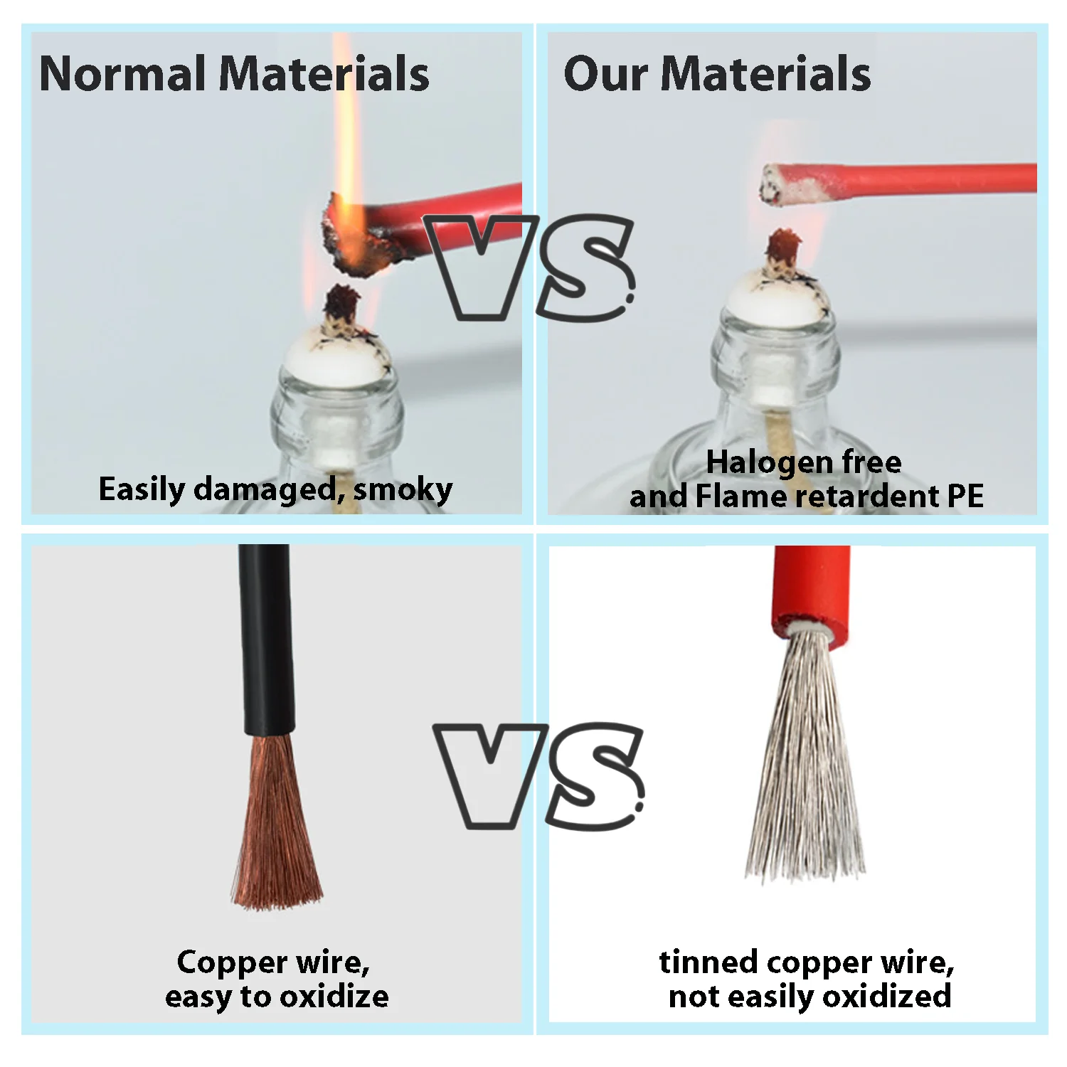 - Flame characteristics: According to IEC 60332-1