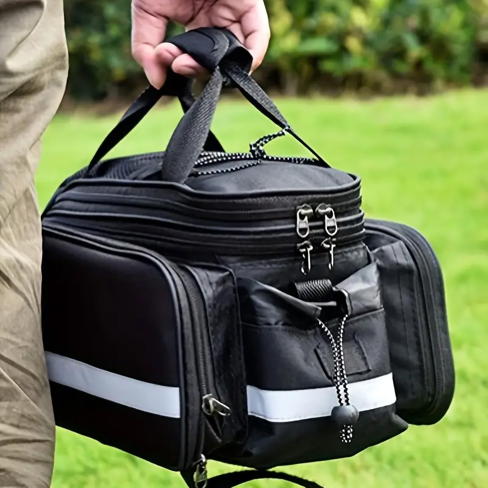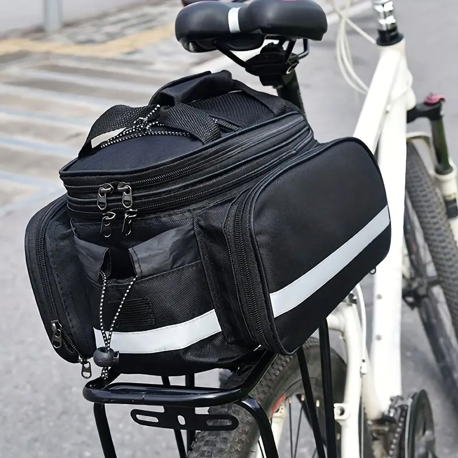 - Secure Attachment:Β The bag easily attaches to your bikeβs rear seat with secure straps or mounting systems, providing a stable and reliable fit that keeps your items safe and easily accessible during your ride.