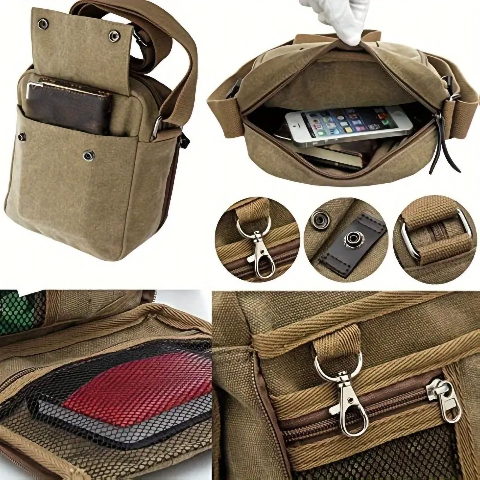 - Multi-Pocket Storage:Β Features a range of compartments, including secure zippered pockets and pouches, perfect for storing your wallet, keys, phone, and other daily necessities.