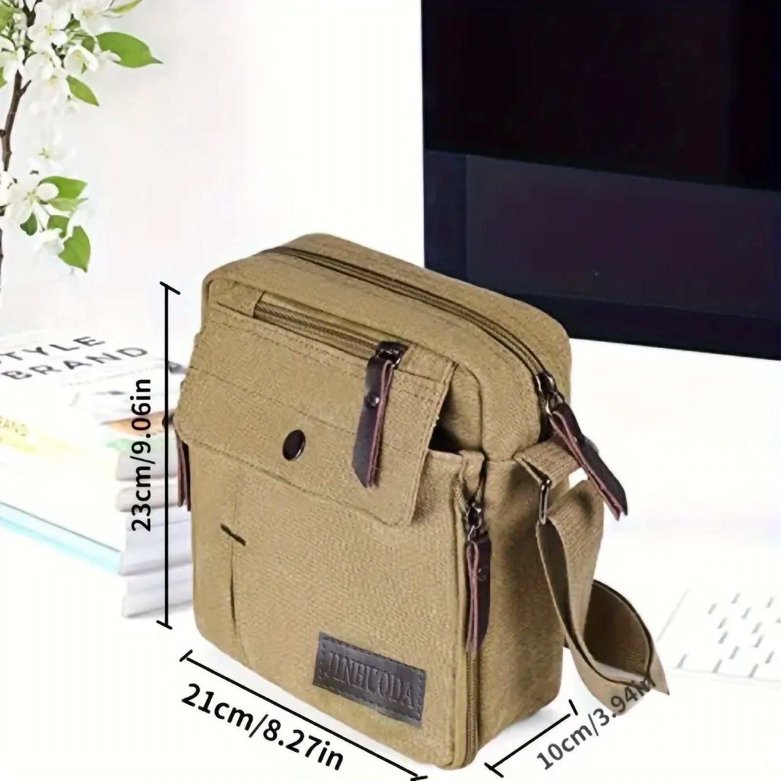- Durable Canvas Material:Β Crafted from robust canvas fabric, this bag combines long-lasting durability with a rugged, stylish look, ideal for daily commutes and casual outings.