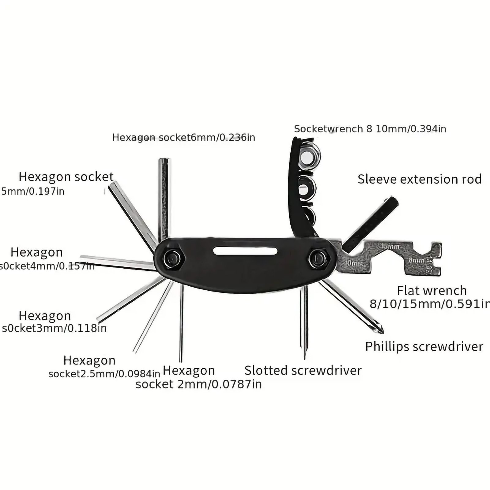 - Multi-Tool Functionality:Β The included multi-function bike tool features hex wrenches, screwdrivers, and other commonly needed tools for bike repairs and adjustments, providing versatility and convenience.