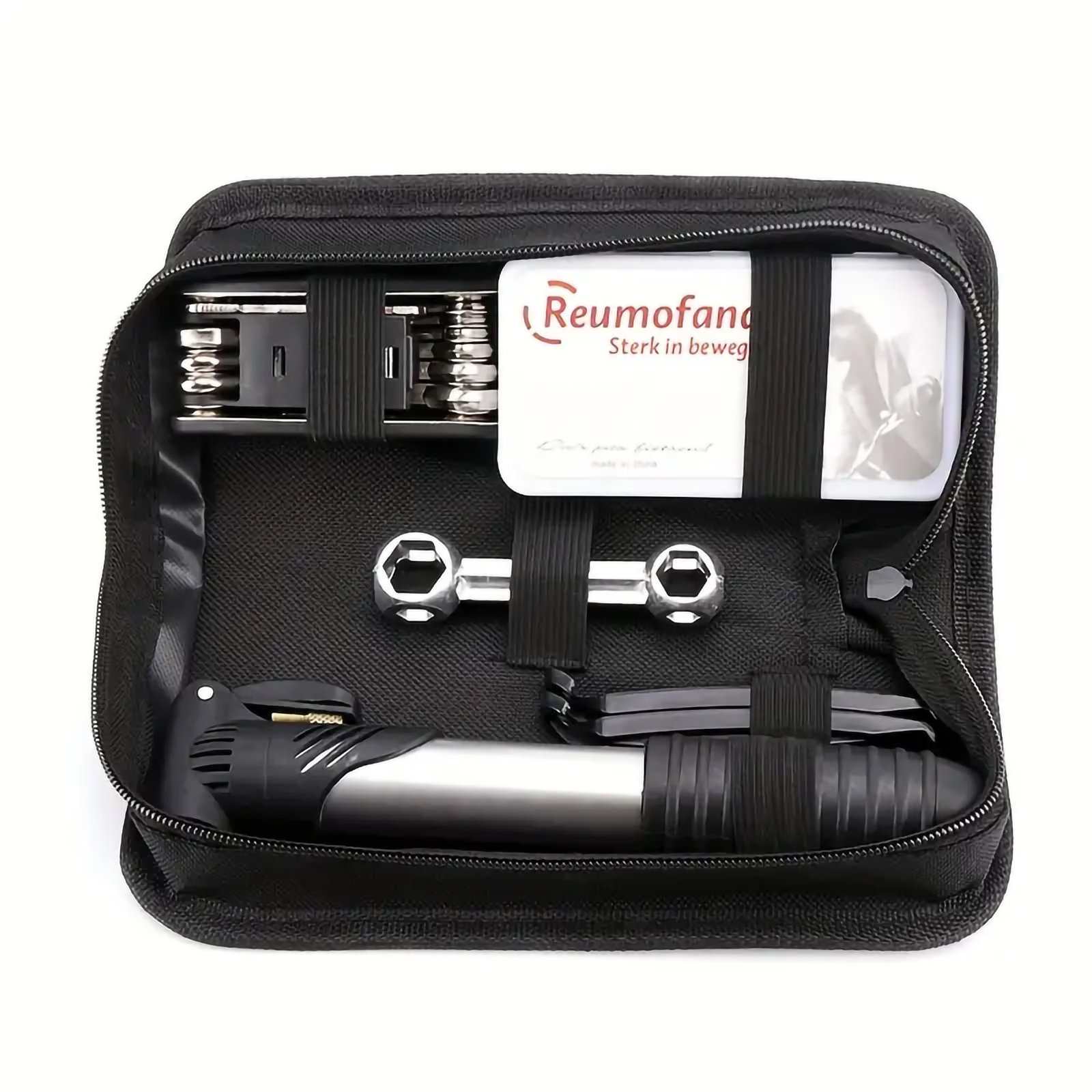 - Compact and Comprehensive:Β This kit includes essential tools such as a tire pump, multi-tool, tire levers, patch kit, and more, all neatly packed into a compact and lightweight design. Itβs an all-in-one solution for bike maintenance on the go.
