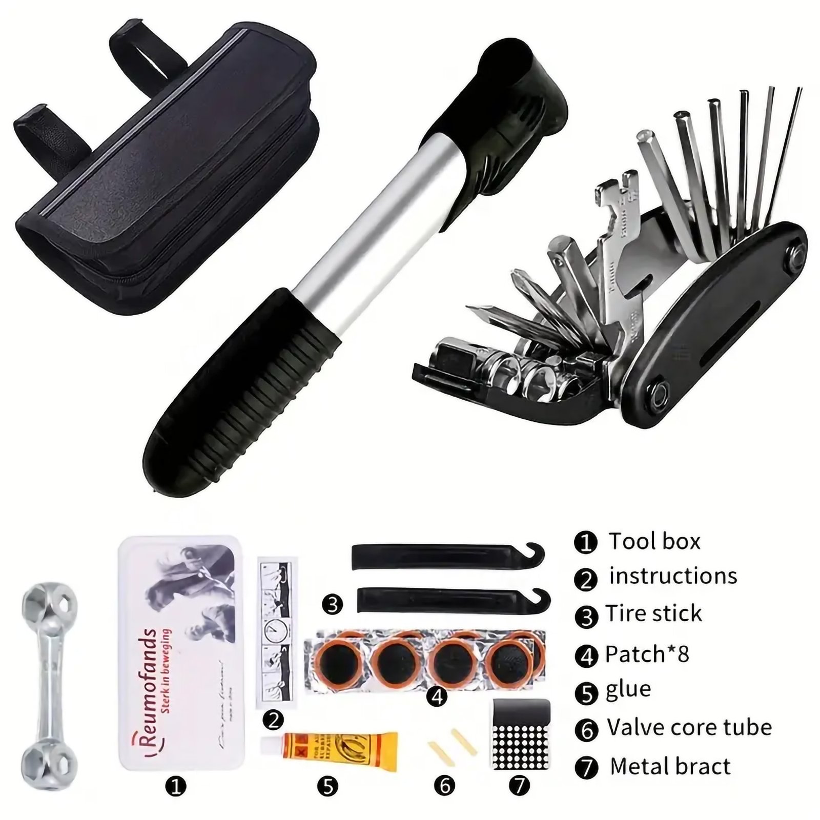 Explore the outdoors with confidence using our Portable Bike Kit with Tire Pump, the perfect companion for camping, travel, and adventurous cycling trips.
